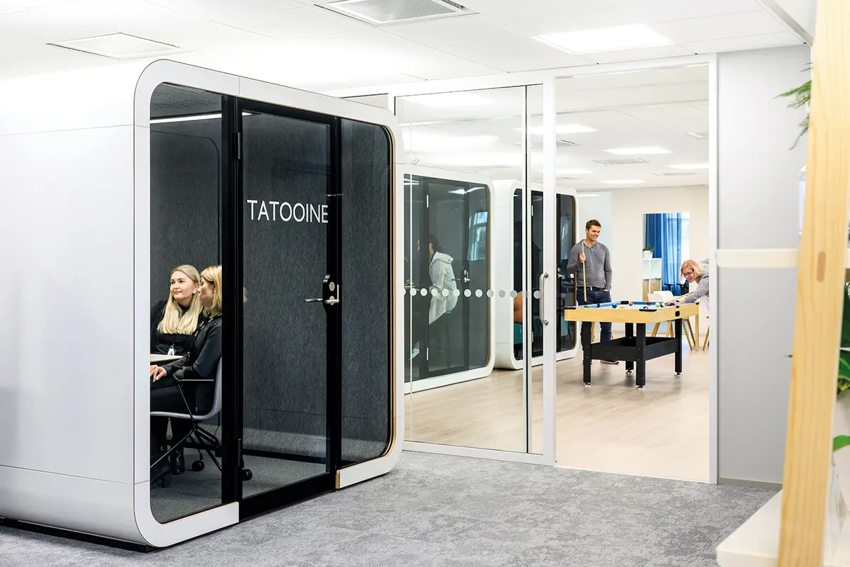 Açık ofislerde yapılan telefon görüşmeleri ve toplantılar, hem konuşan hem de çevredeki çalışanlar için rahatsız edici olabilir. Sessiz Kabin, bu sorunu ortadan kaldıran yenilikçi çözümler sunar. Akustik telefon görüşme kabini modellerimiz, açık ofis telefon kulübesi ihtiyacınızı modern bir şekilde çözer. Ayrıca, ekip içi iş birliğini desteklemek ve gizliliği sağlamak amacıyla tasarladığımız akustik toplantı kabini seçeneklerimizle, ofis içi hazır toplantı odası kurmanın en pratik yolunu sunuyoruz. Office pod modellerimiz, havalandırmalı toplantı kabini özellikleri ve estetik tasarımlarıyla dikkat çekerken, taşınabilir toplantı kabini seçeneklerimizle esnekliği de beraberinde getiriyoruz. Farklı ihtiyaçlara uygun akustik toplantı kabini fiyatları ile bütçenize dost çözümler sunuyoruz.